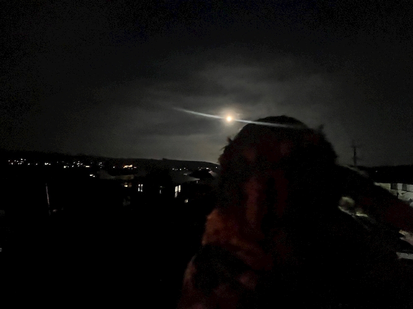 出勤前に母と🐱ちぴと🐶BABとスーパームーン鑑賞会したよ𖤐 ̖́-