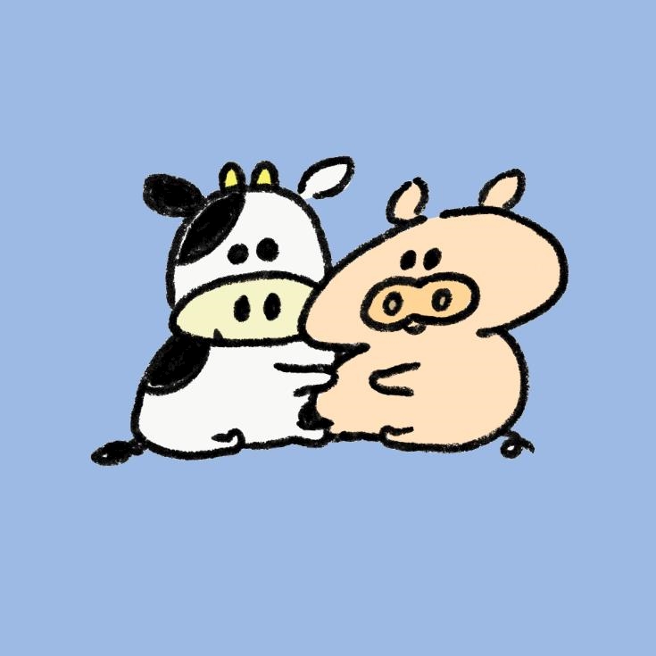 牛と豚が仲良さそうにしてるイラスト