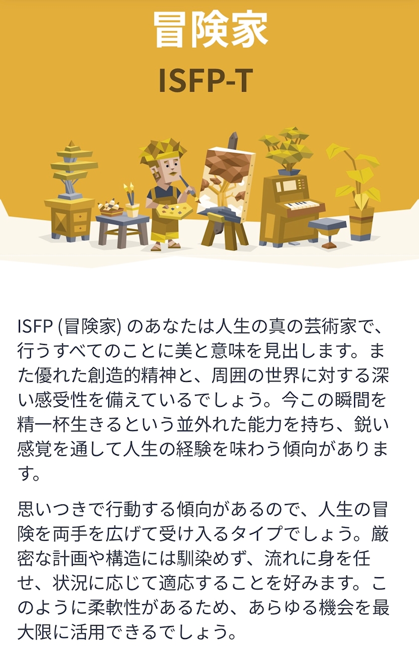 ISFPです。自分でも納得です。