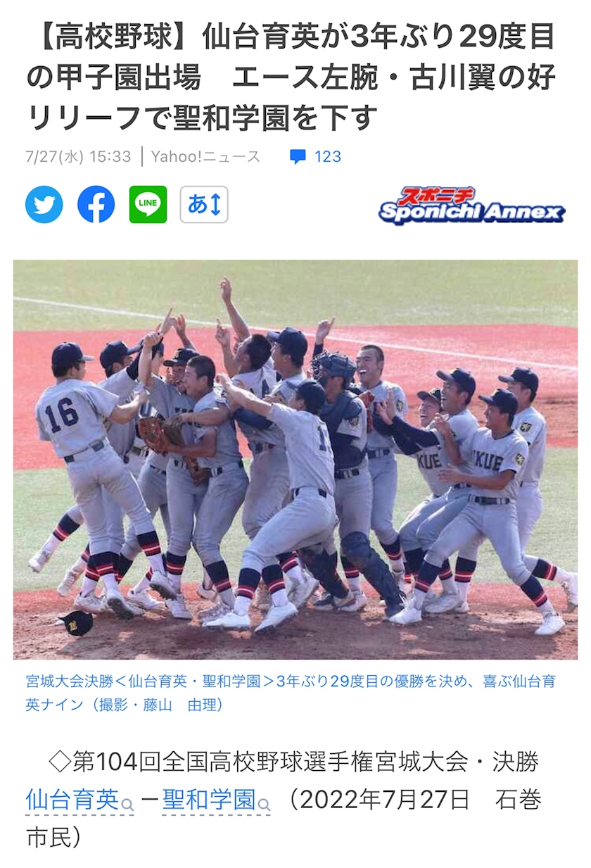 高校野球宮城代表!