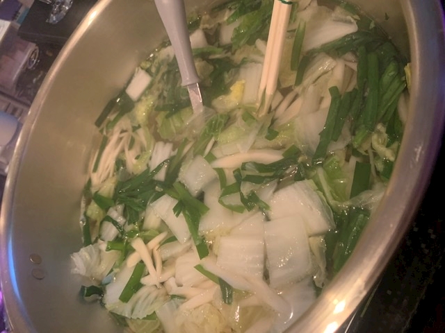 昨日鍋パで余った野菜あったから