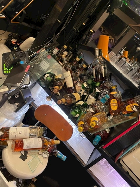 原因はどうやらボトルを置いてるガラス棚が重さに耐えられず割れてしまった模様💦
