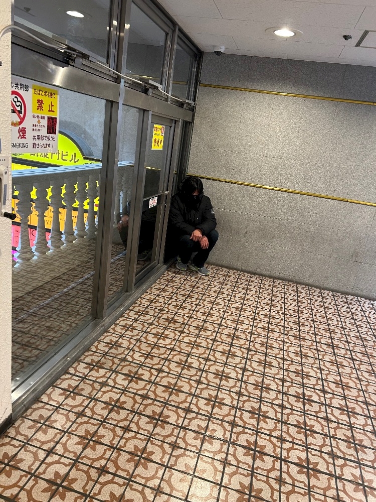 エレベーター前で入れ違いで