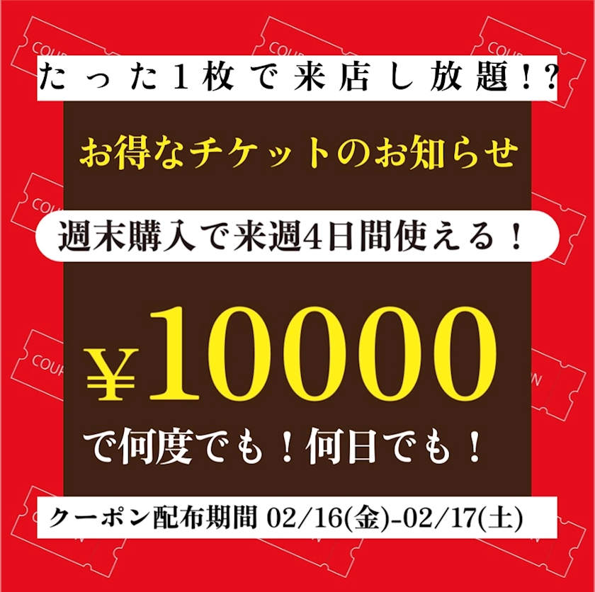 - たった1枚で来店し放題!?お得すぎるチケットのお知らせ