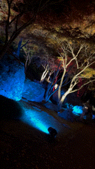 いろんな色に変わっていく中庭が