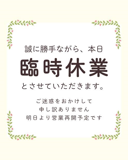 当店お休みとさせていただきます🙇♂️