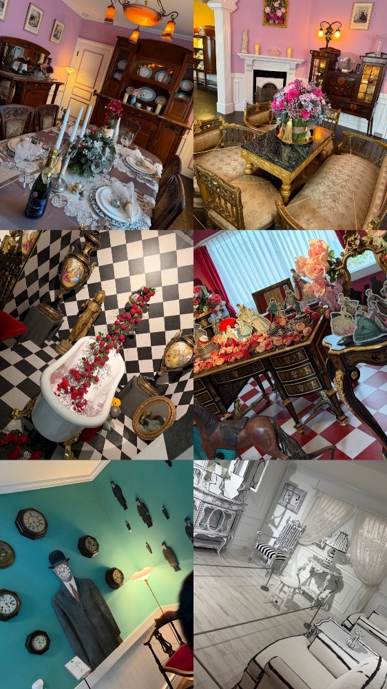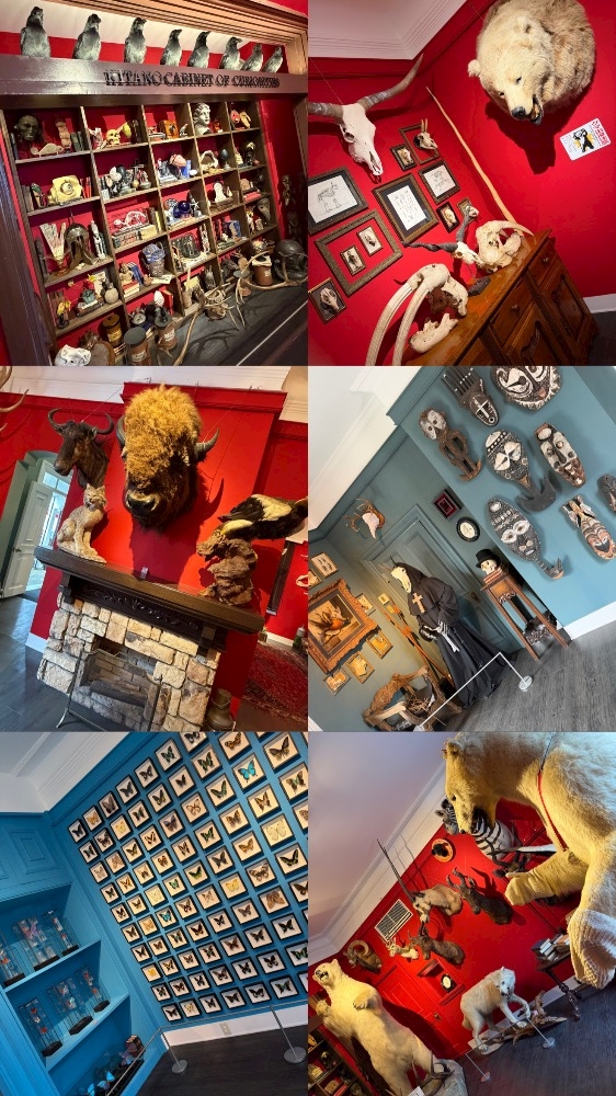動物のツノや剥製、世界の蝶の標本等のコレクションがたくさん飾られた奇抜な館。