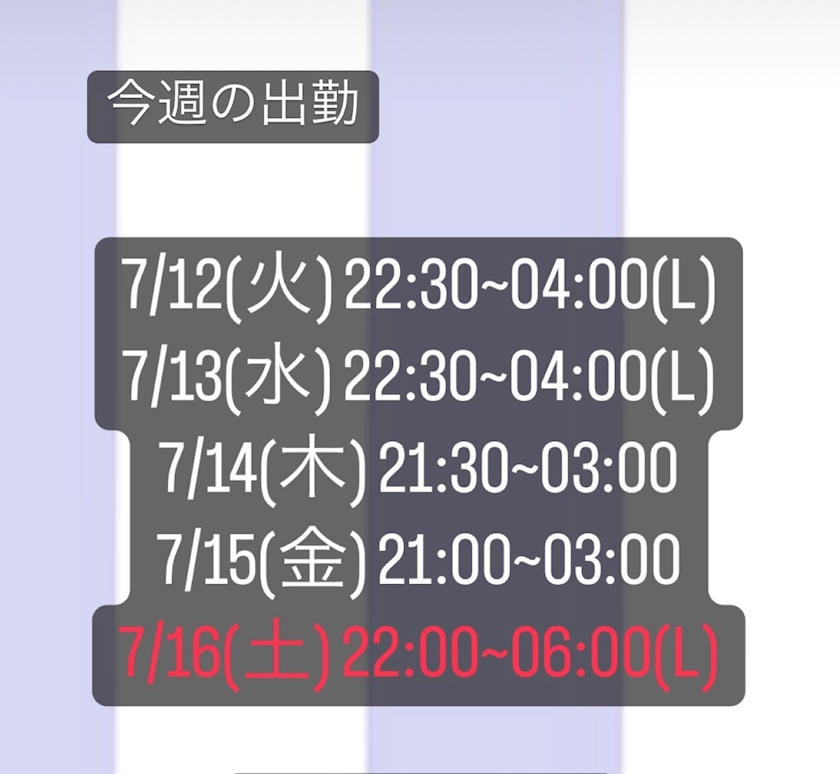 今週の出勤はこちら