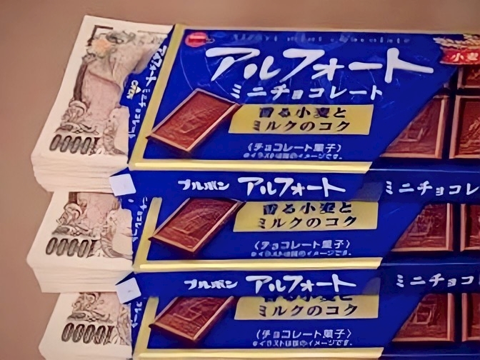 風俗嬢の友人がアルフォートの箱に一万円札の束を入れているのを見ました。