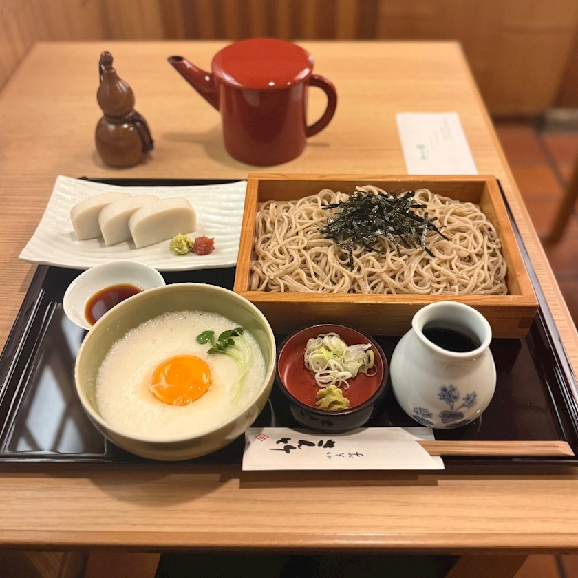 粘り気のあるとろろがほどよく冷たいつゆと合わさることで、なめらかな口当たりと優しい旨みを演出。つゆの塩気や旨みは過度でなく、だしの柔らかな輪郭が際立ち、そばの個性を壊さず引き立てます。山葵やネギを混ぜると味の印象も多層的に変化。