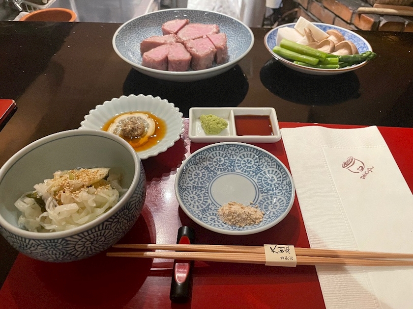 目の前で七輪で焼いてもらったお肉を