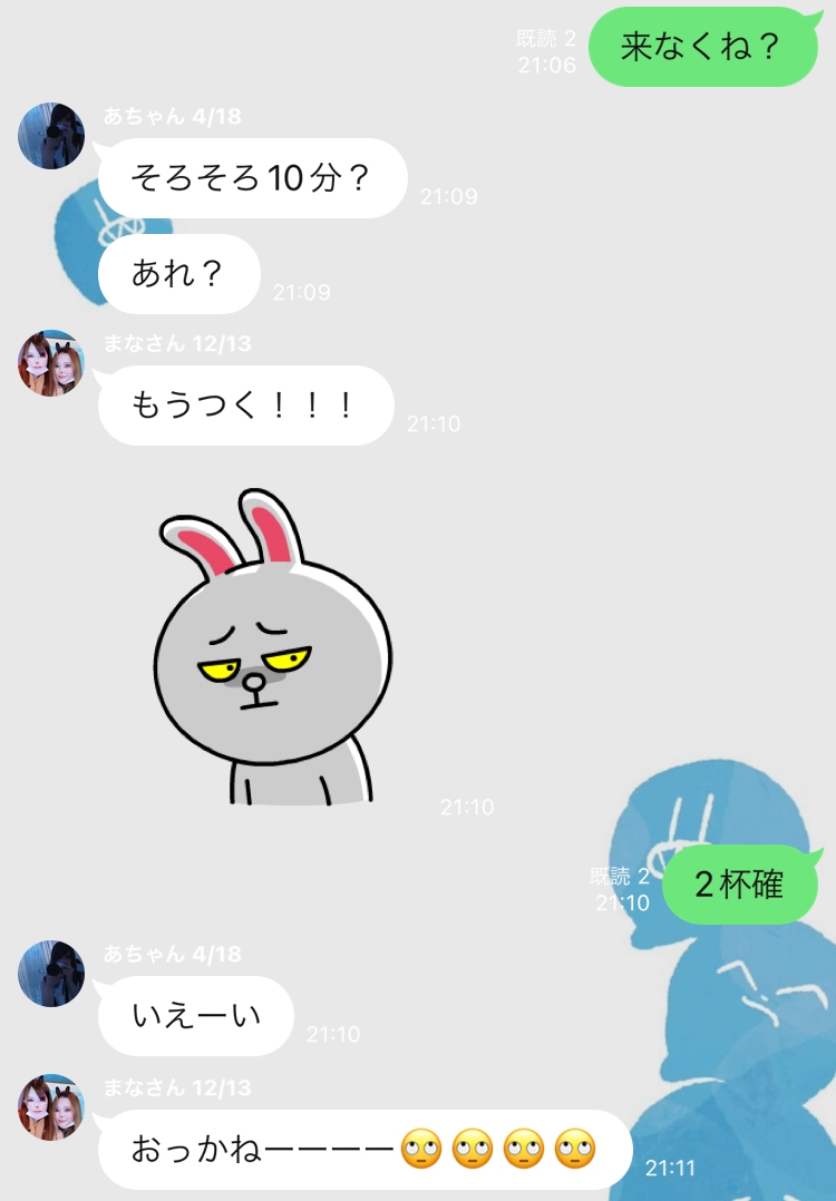 まなさんは10分遅刻により2杯が確定した✌🏻