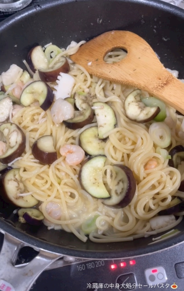 ナス ねぎ しめじ シーフード等が入っている🙂