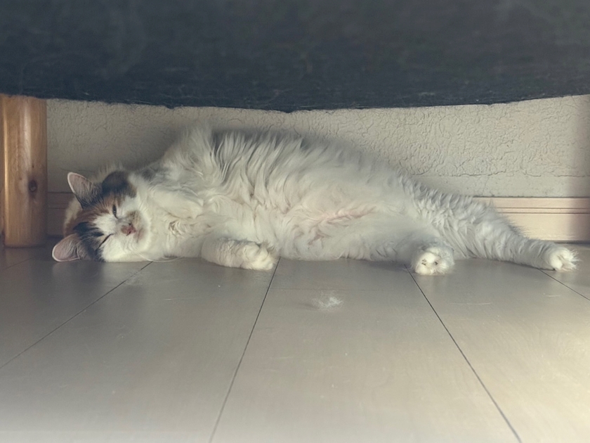 手前に抜け毛落ちてるのがポイント