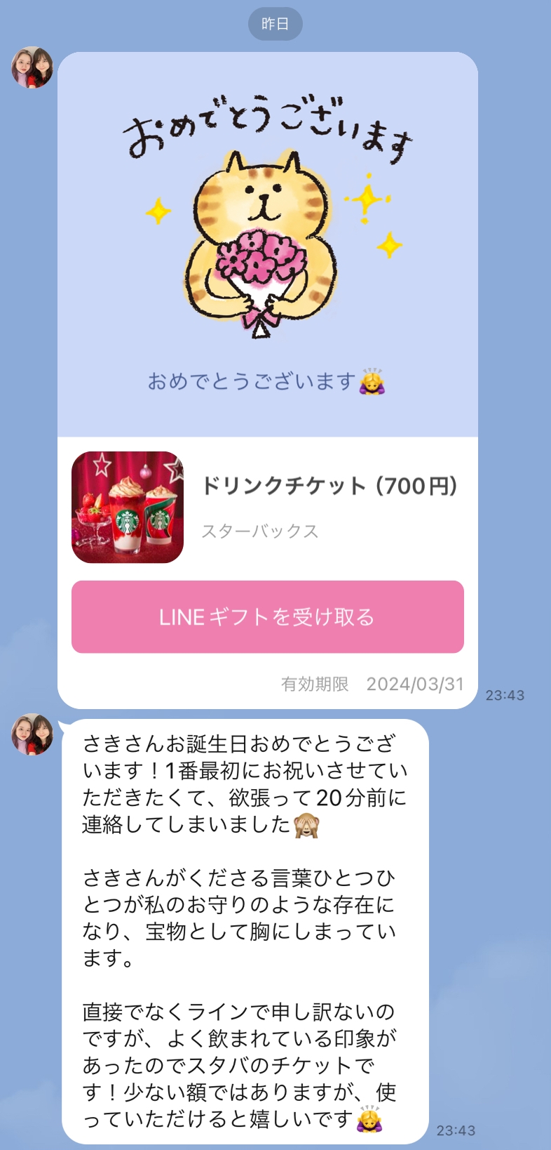 そして彼女とは未だにあったことがないにも関わらず、こんな風にわたしのことを考えてスタバのチケットまでつけれる人間性に度肝を抜かれました。