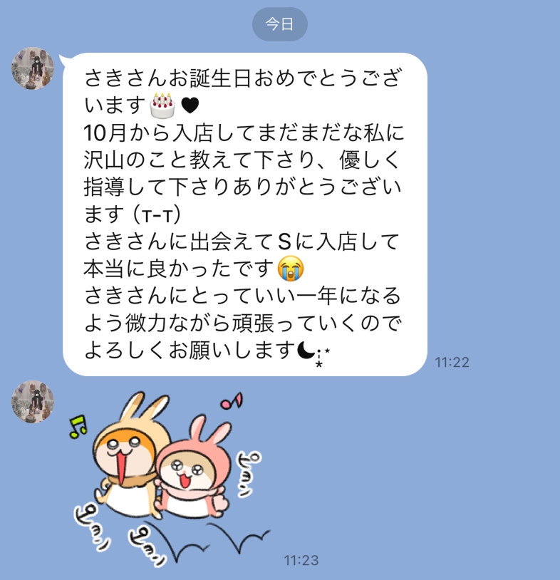 ほんとに人に感動を与えられる人間って中々いないからあたしにとっても、bar Sにとっても大事な人材の一人になりました