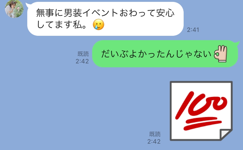 男装イベント二日目にほんの少しだけ顔出したんだけどシャンパンが入ってて、関係ないお客さん達までもがいえーいってなってたりおおおおおって拍手してて