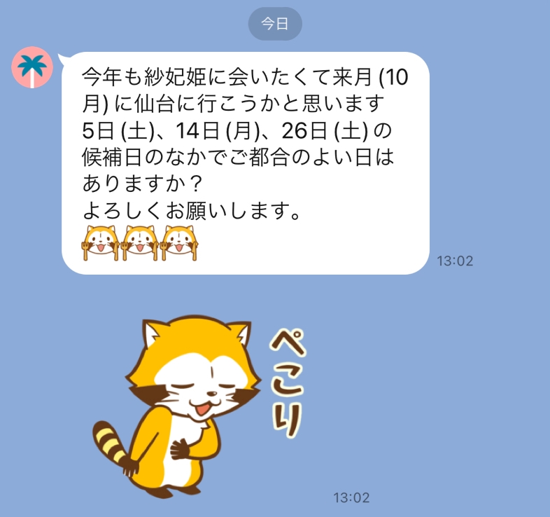 たまたま観光できて知り合ってそこから毎年必ず私に会う為だけにきてくれます