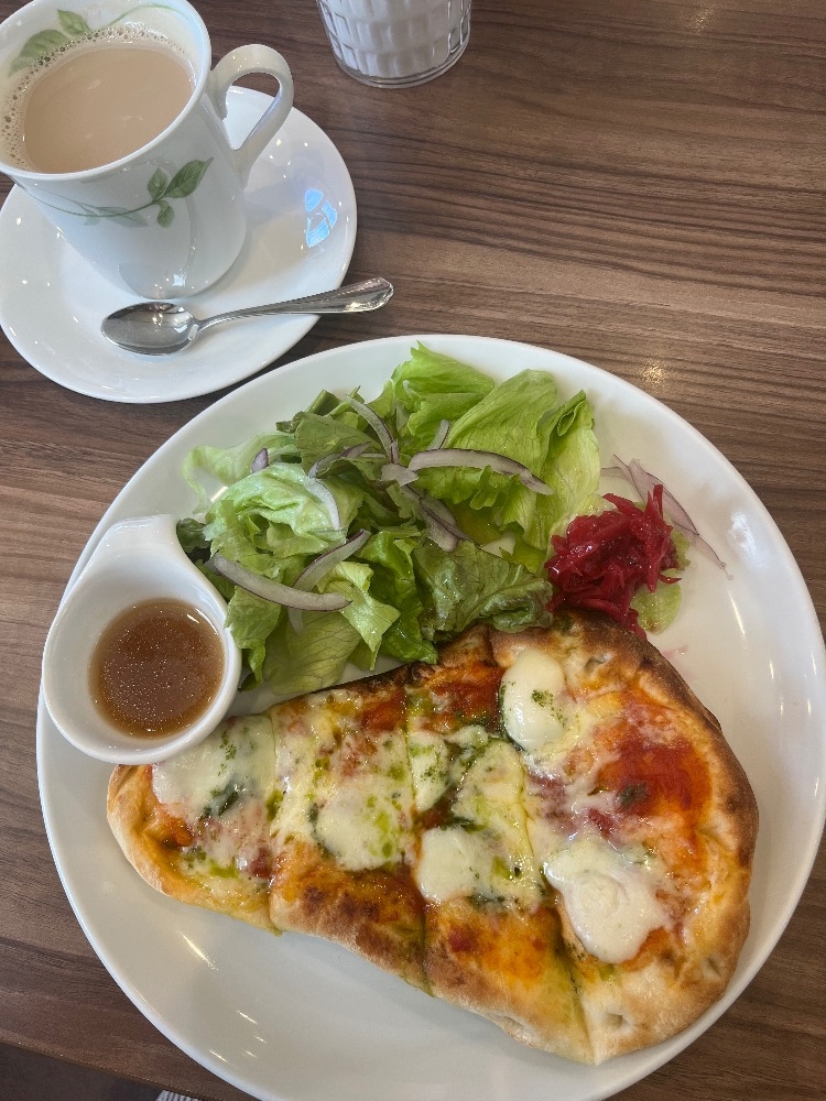 カフェオレとピザパン🍕