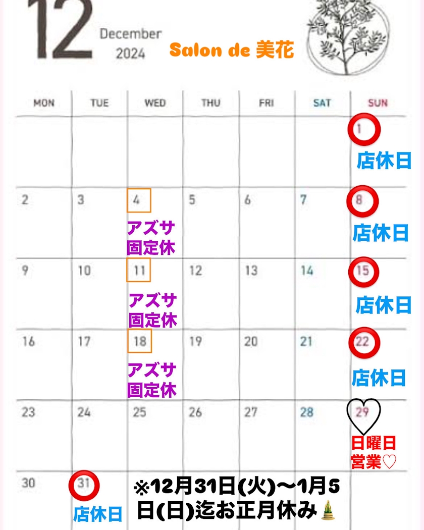 年末Salon de 美花andアズサ予定