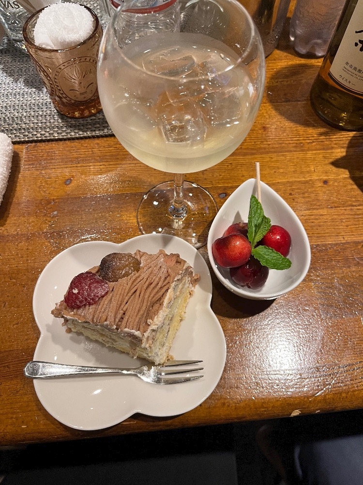 ケーキ🍰と白ワイン頂きました😋