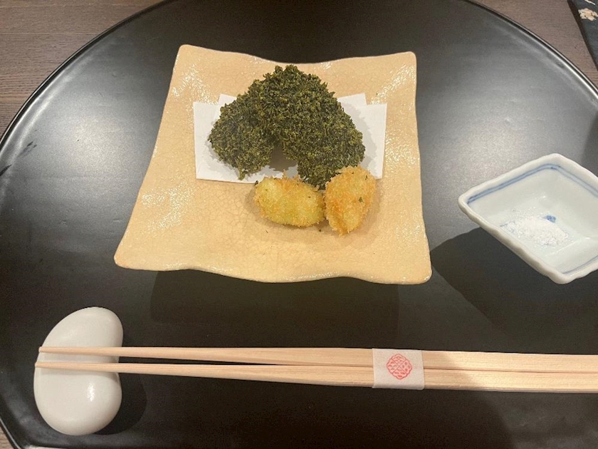 鯛の磯辺揚げとそら豆