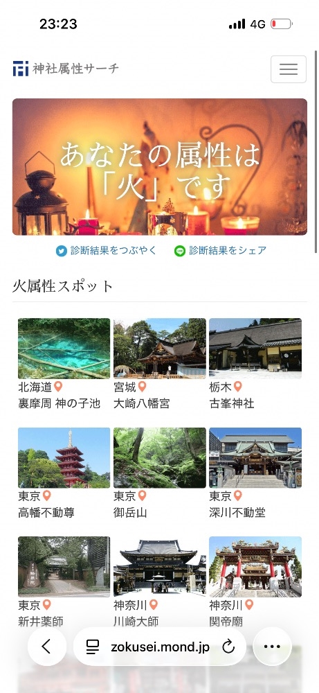 属性神社へ