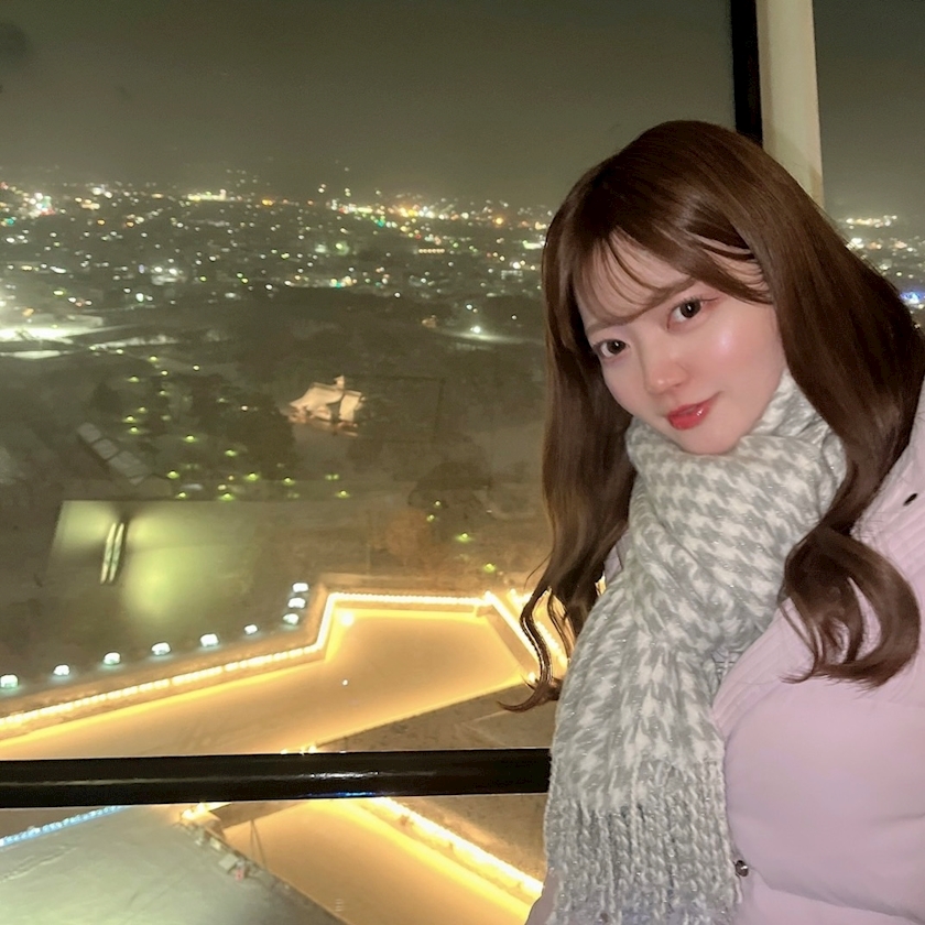 見える夜景と桃子サウルス🍑