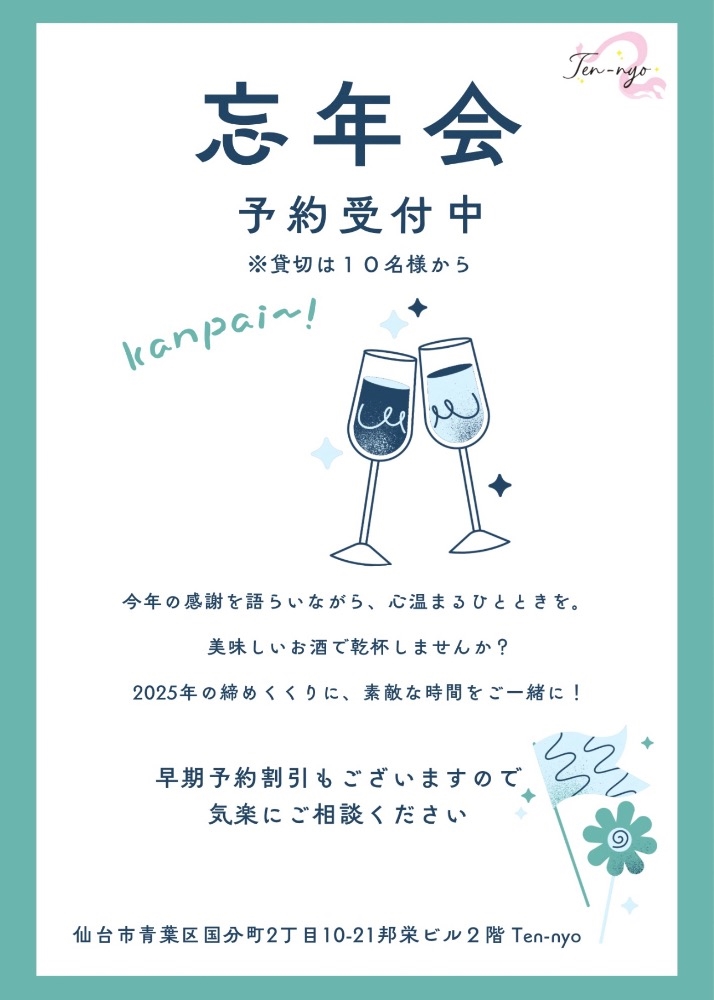 忘年会の予約も受付開始しました!