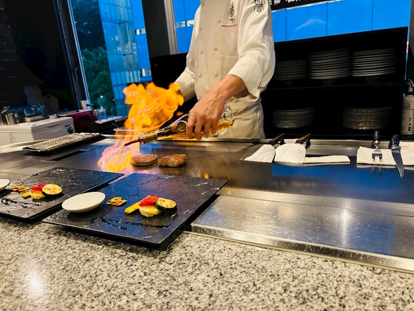昨日は鉄板焼き屋さんからスタート!