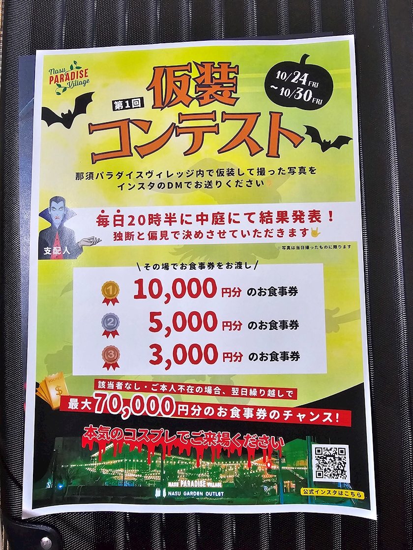 本日より華乃ハロウィンコスプレ🎃✨ 昨日は那須のパラダイスヴィレッジの本気すぎると噂のハロウィンイベント見に行ってみた٩(🔥ロ🔥)و ̑