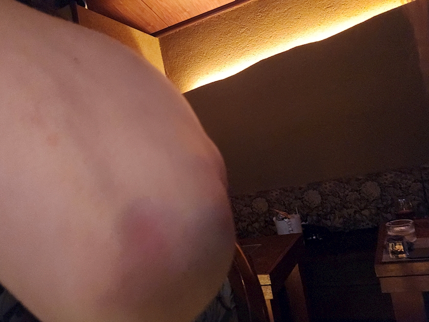カウンターに思いっきり肘ぶつけて