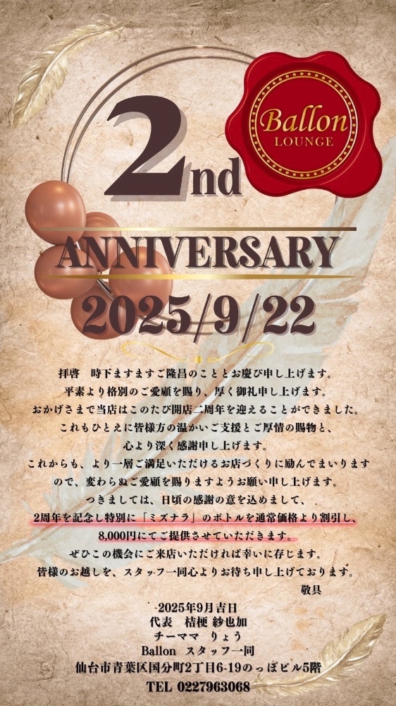 Ballon 2周年 です🥂✨