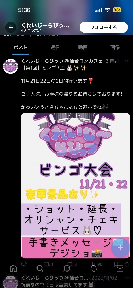 🎀今月21・22日はビンゴ大会だよ~っ🎀 - らむ🐰3月生誕🐰 - くれいじーらびっつ - 国分町のコンカフェ