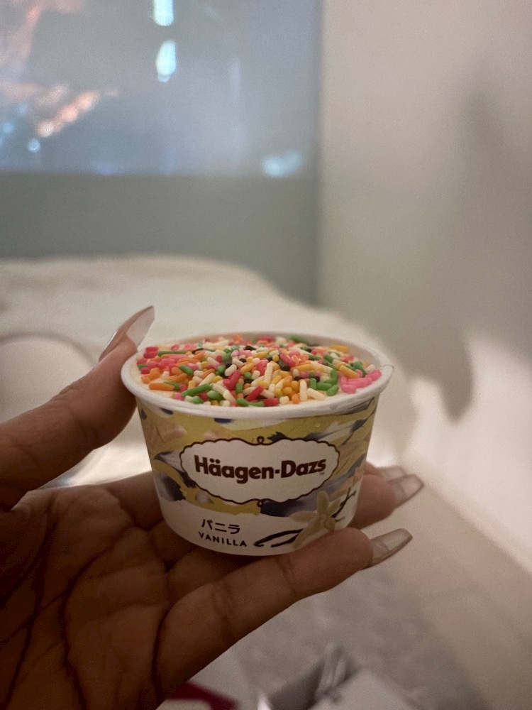 アイスにチョコスプレー