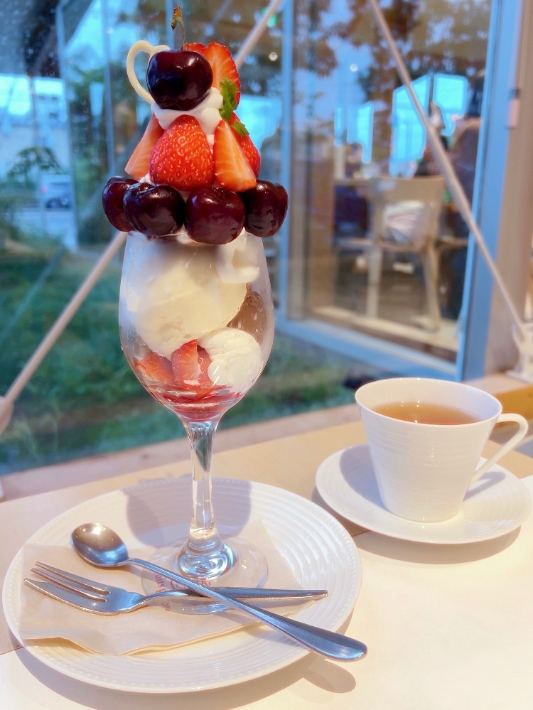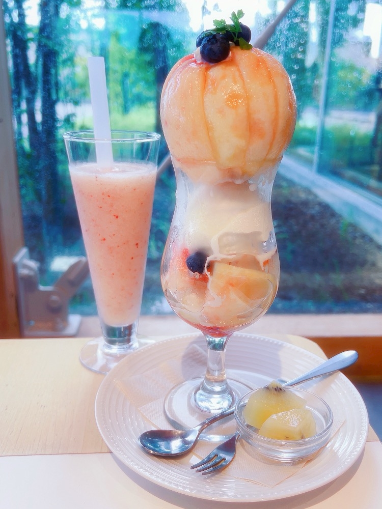 念願のまるごと桃パフェ🍑🍨