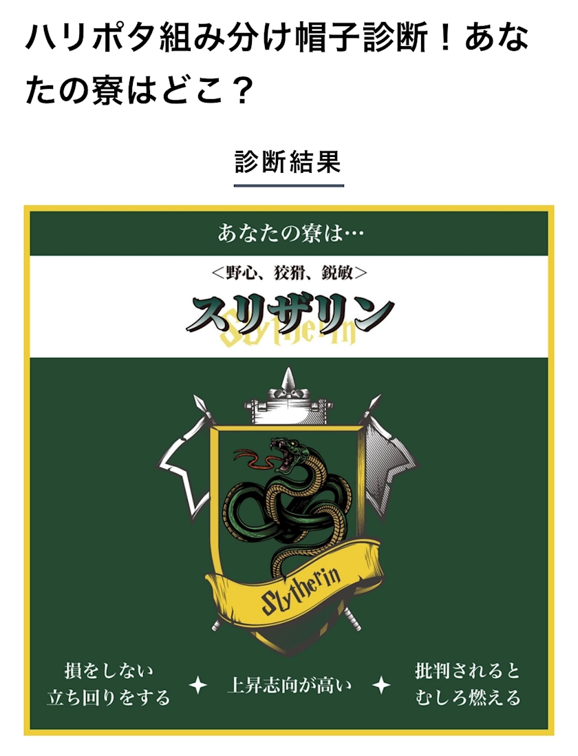 結果スリザリンでした🐍