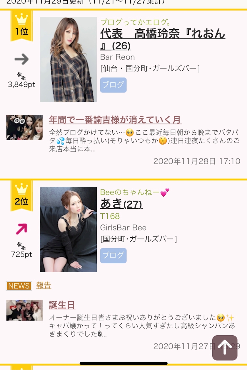 ガールズバーランキング - 代表 あき - GirlsBar Bee・ガールズバービー - 国分町のガールズバー