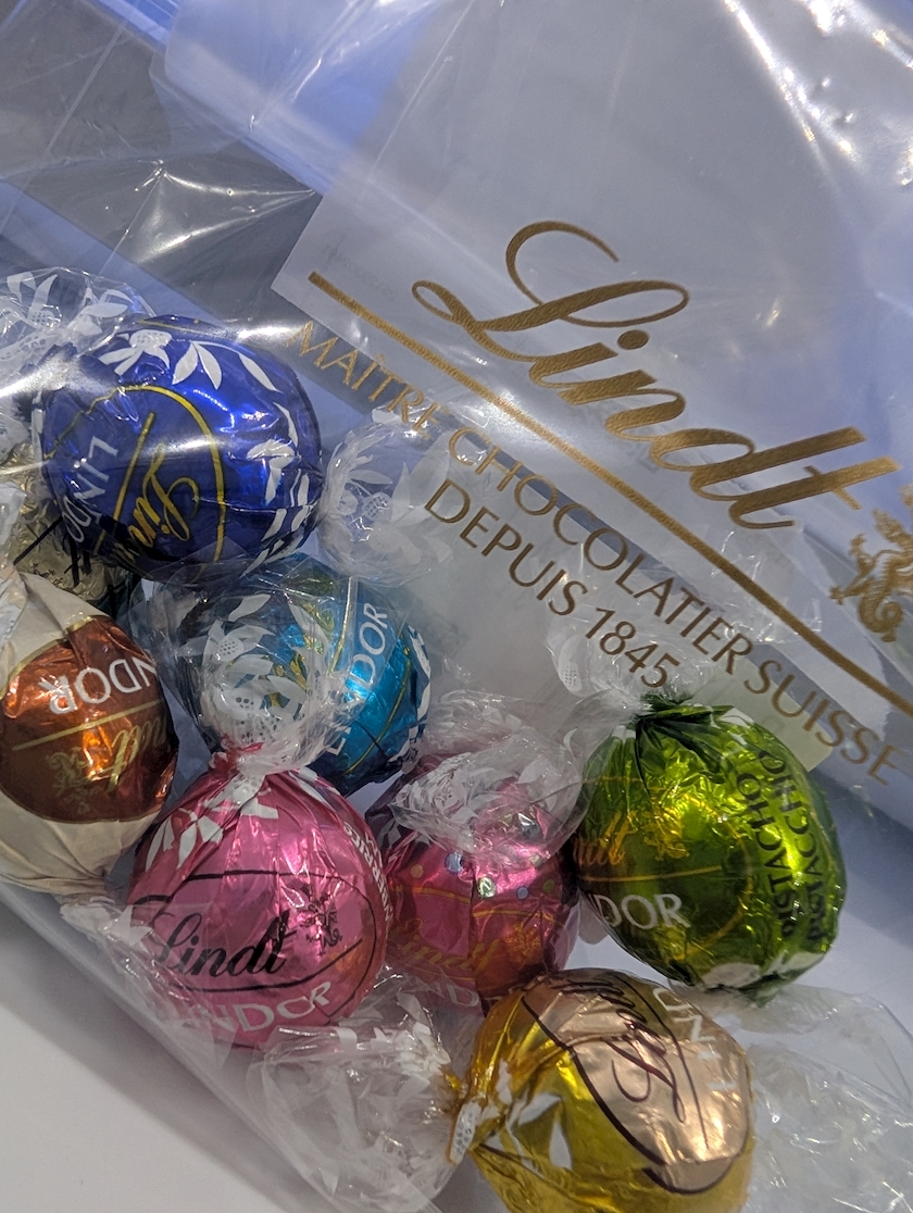 写真は全然関係ない、自分用バレンタインチョコレート🍫リンツ量り売りだから、中坊の頃に行ってたショッピングモールの中のお菓子の量り売りしてるとこ思い出した、もう無いの寂し