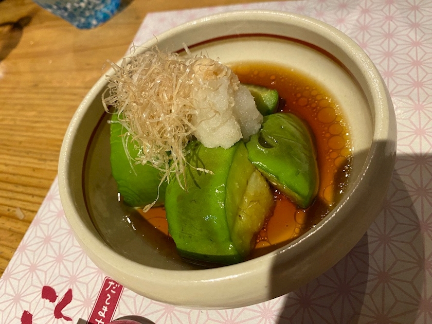 青茄子の揚げ浸しだったのですが、