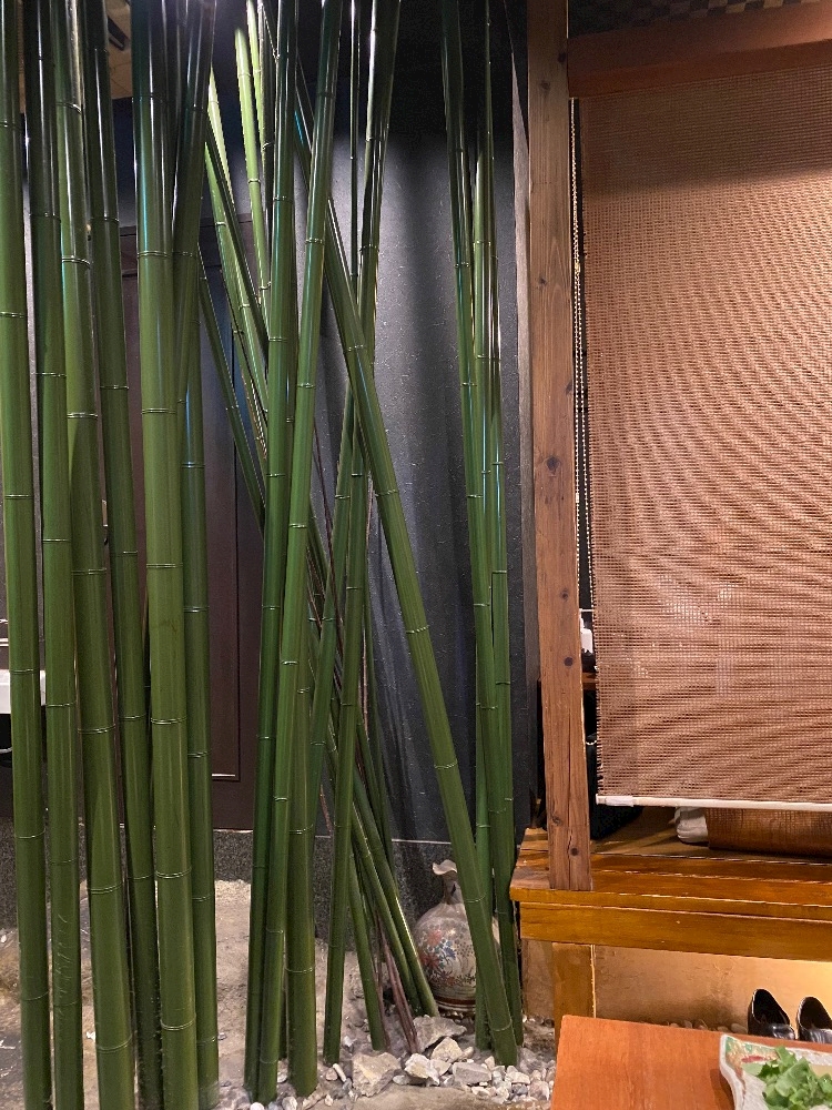 お店の中に竹のオブジェとかあって