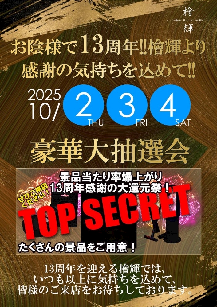 明日から檜輝は13周年イベントとなります!