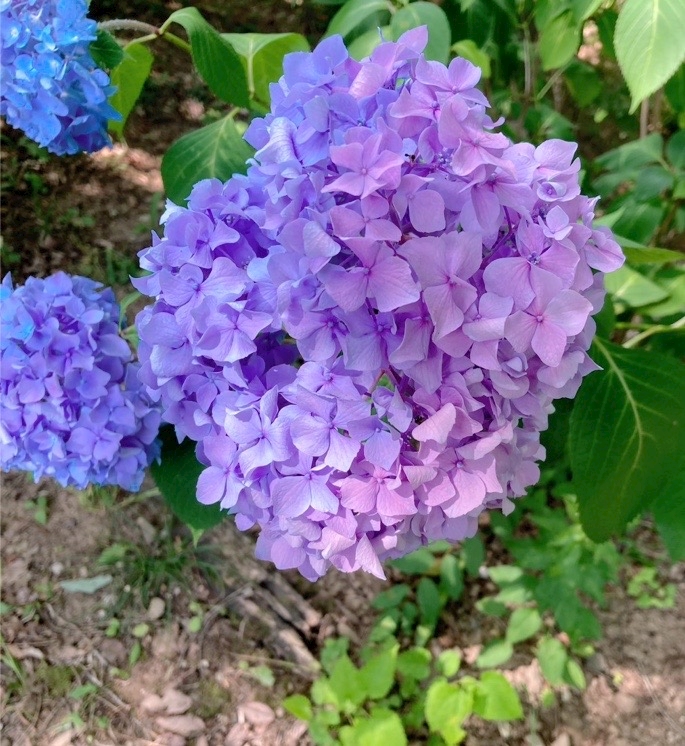 青と赤の半分ずつの紫陽花