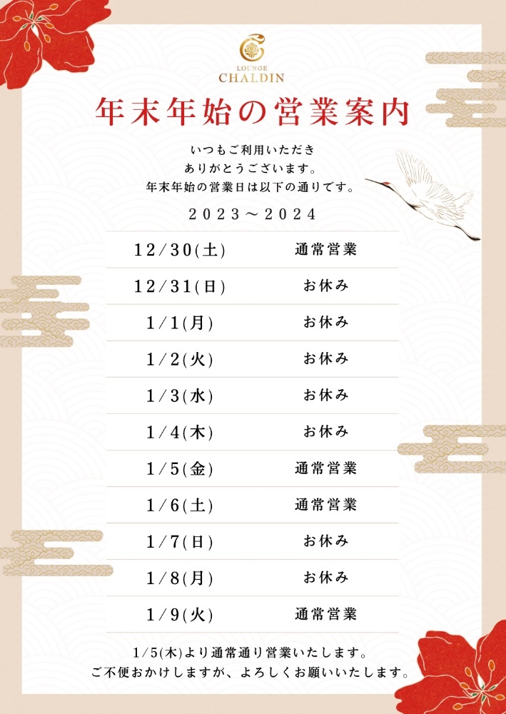 CHALDINは30日までの営業となっております🌟