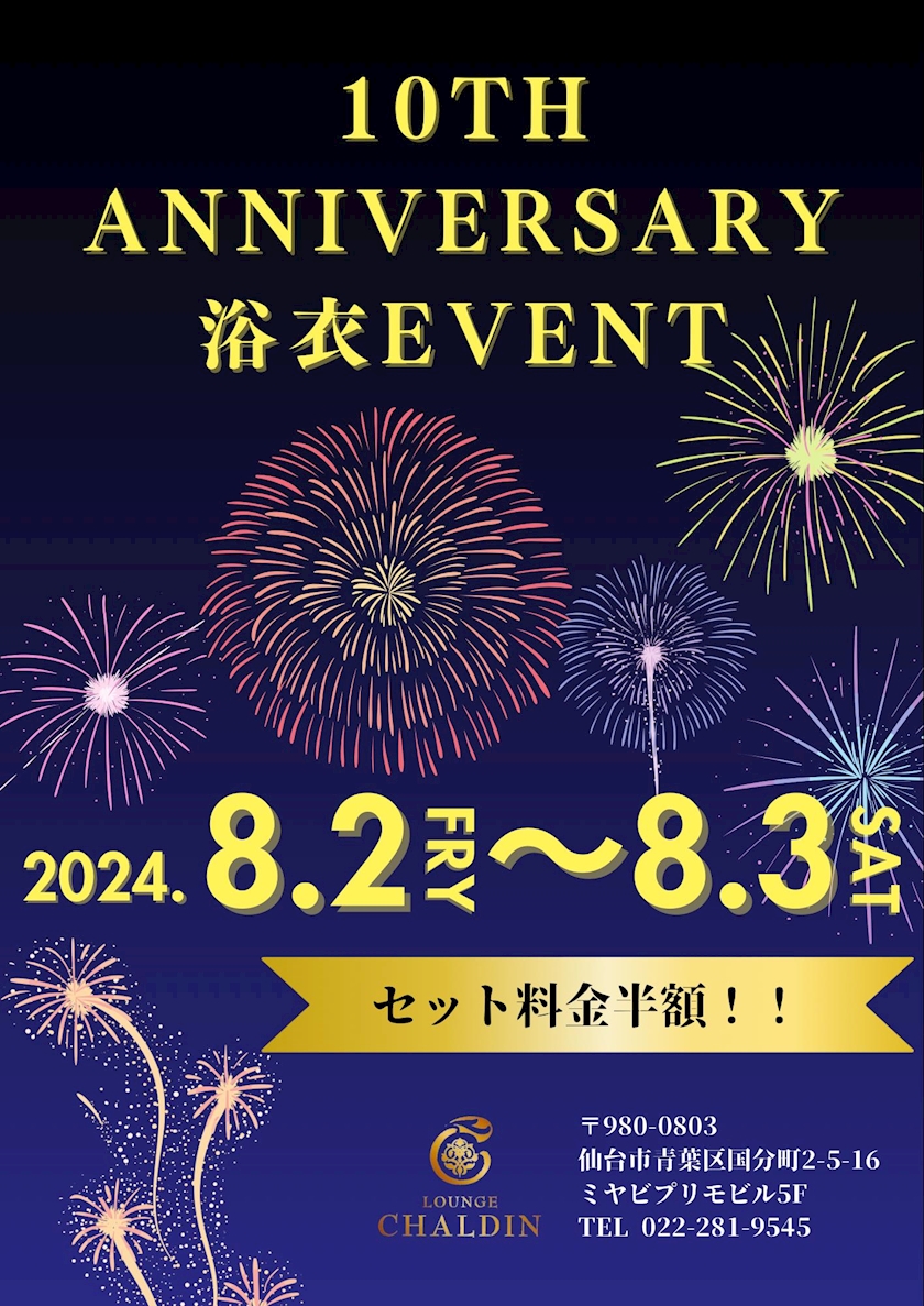 🌼10周年祭&浴衣イベントのお知らせ🌼 - 🌼りなママ🌼 - CHALDIN・シャルダン - 国分町のスナック