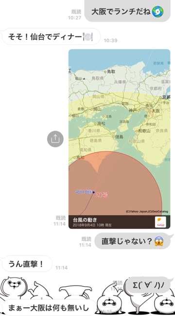 台風君は大阪でランチですねφ(..)メモメモ