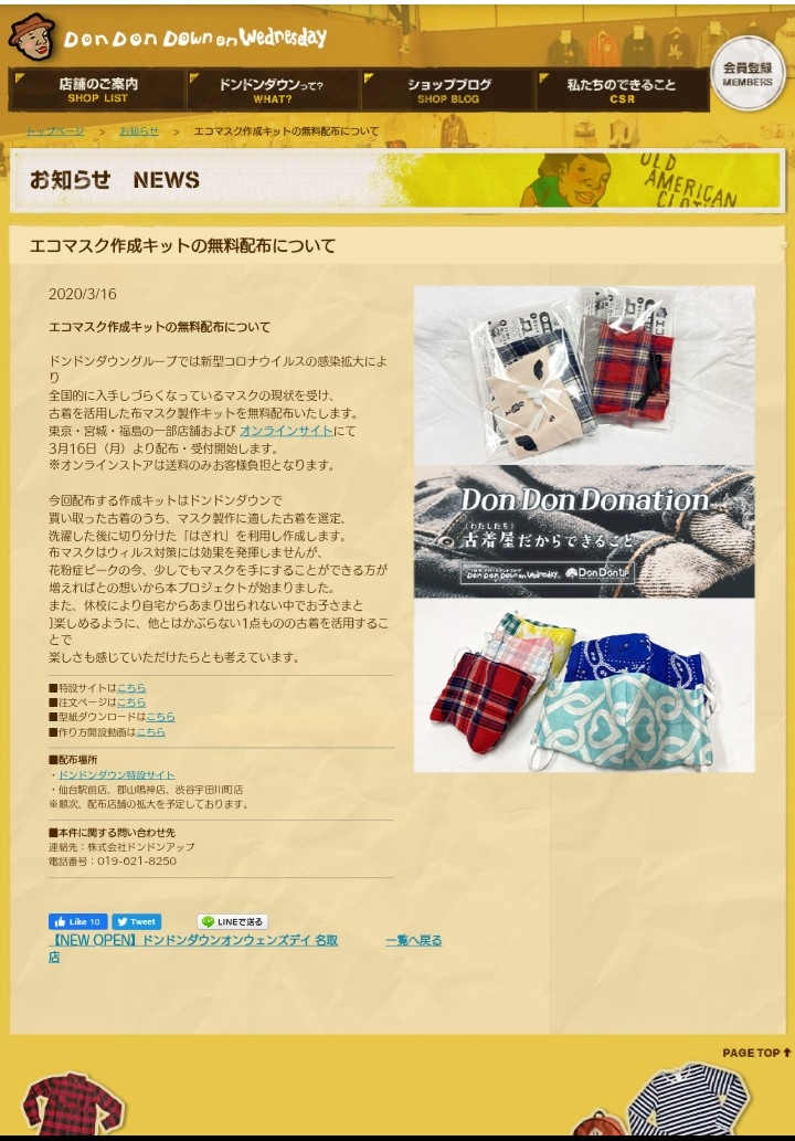手作りマスクキットの無料配布をご紹介してました