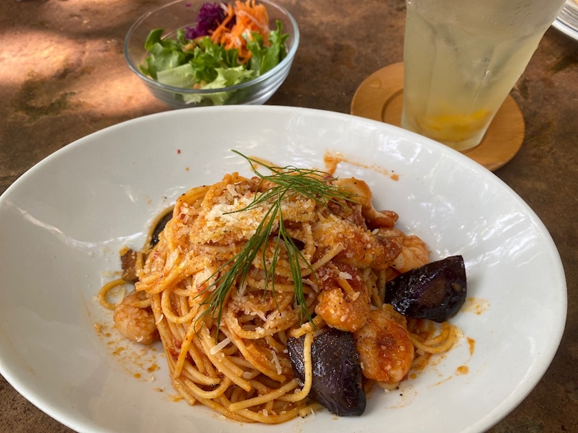 なすとエリンギとエビ入ってて