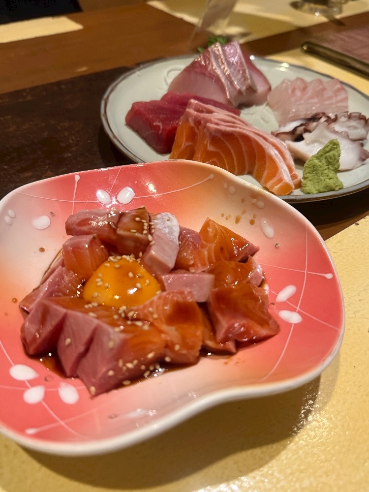 昨日の同伴先でお刺身とサーモンユッケ