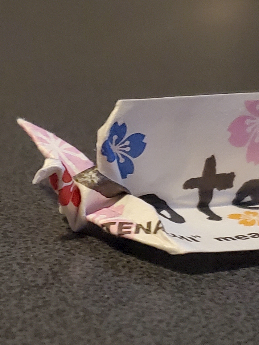 箸袋の端に鶴です!